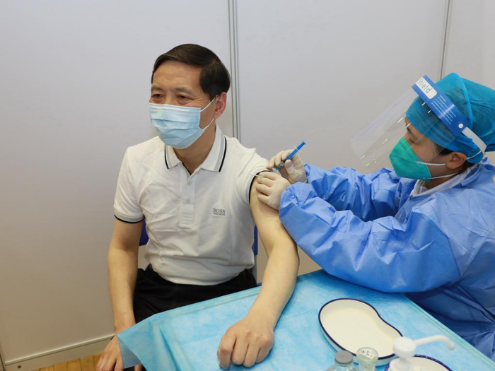 郭广生校长正在接受疫苗注射