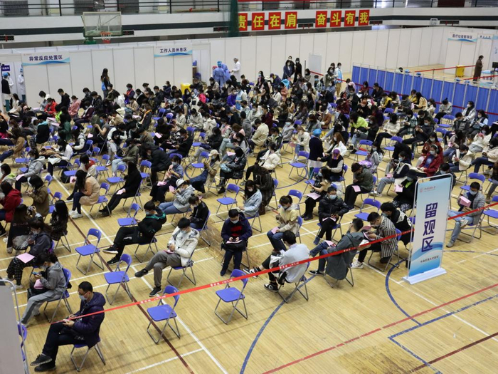 发放知情同意书、收取健康信息承诺书、核对身份信息、进行疫苗注射等各个环节有序推进。现场设置留观区,供疫苗接种完成后半小时健康观察。