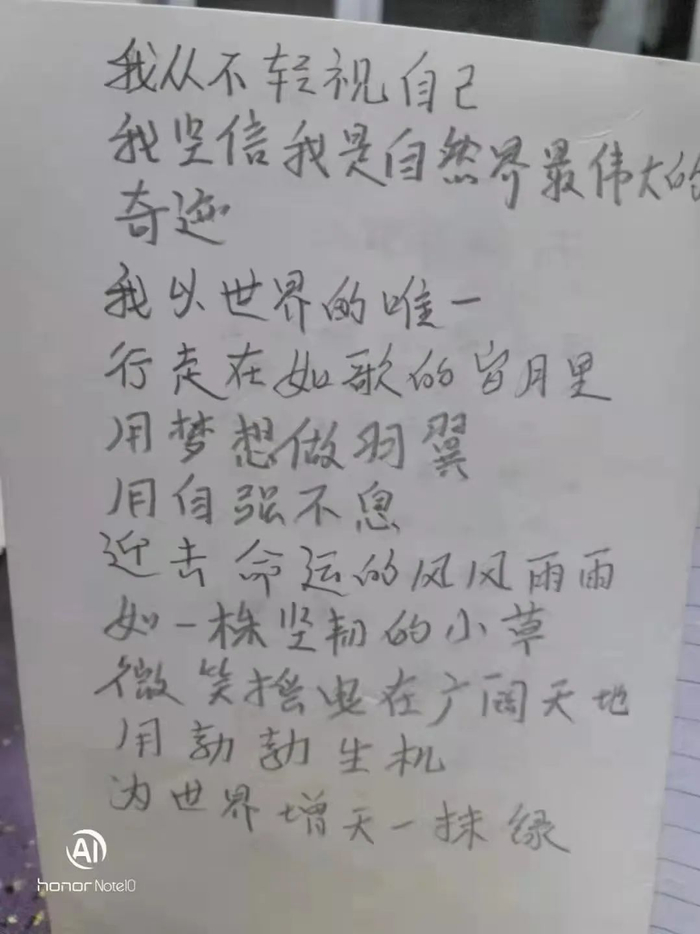 “我写的这些,都是朗朗上口的小顺口溜,也算不上诗歌,希望能在同学们中间广泛传播起来,形成一种安全文化的氛围,只有平安、安全才能读好书。”李英明说。