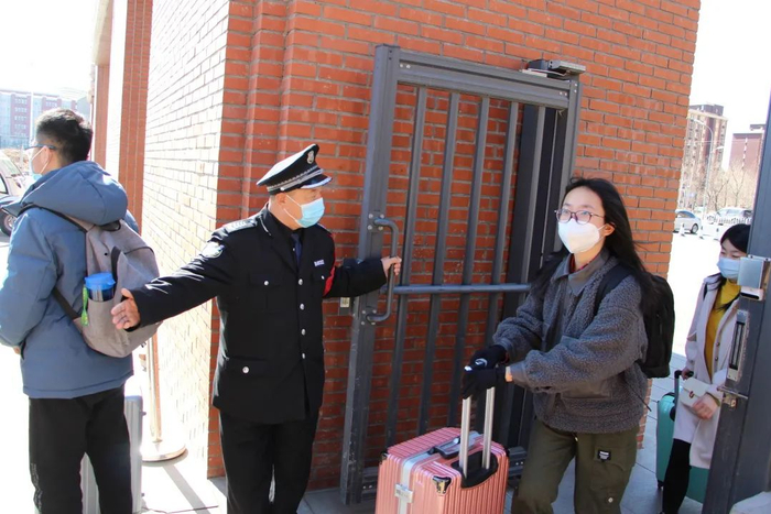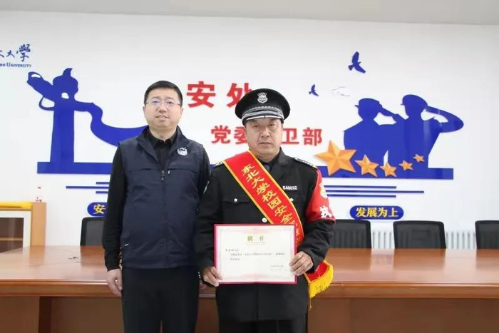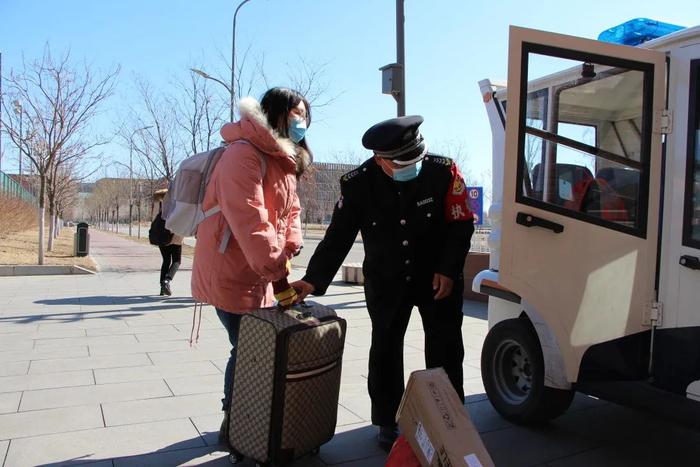 学生返校日,看到学生拎着大包小包的行李,他主动帮助学生开门;看到一个女生自己带了5、6个行李包,他用巡逻车把女生送回了寝室。他总说,“学生就像自己的孩子,他们是来好好学习的,其他的事情咱能帮就多帮一些,咱得热心为师生服好务,让师生感觉到温暖。”
