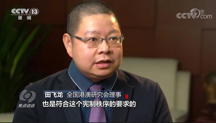 全国港澳研究会理事 田飞龙:全国人大常委会这次修法也是符合这个宪制秩序的要求的,这其实也探索成熟了一种关于在“一国两制”框架下,中央如何行使全面管治权,如何丰富发展“一国两制”制度体系的一种法治模式。