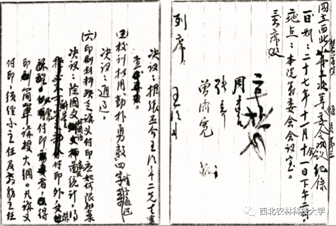 1938年11月11日, 国立西北农学院筹委会第三次会议讨论制定校训的记录(辛树帜、周建侯、张丕介、曾济宽等委员出席)