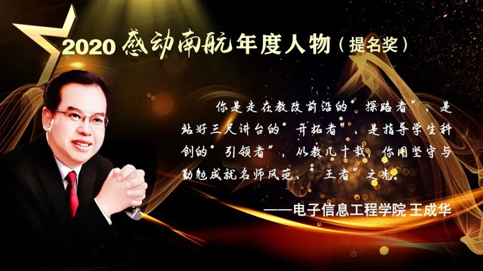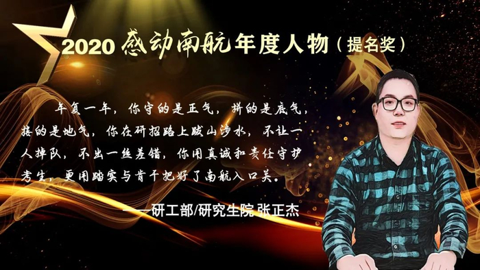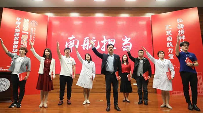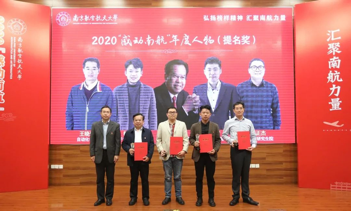 单忠德、杭育新分别为2020“感动南航”年度人物获得者及提名奖获得者颁奖。
