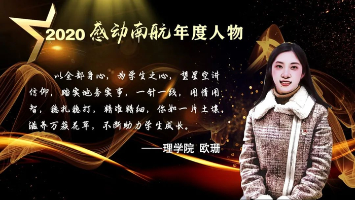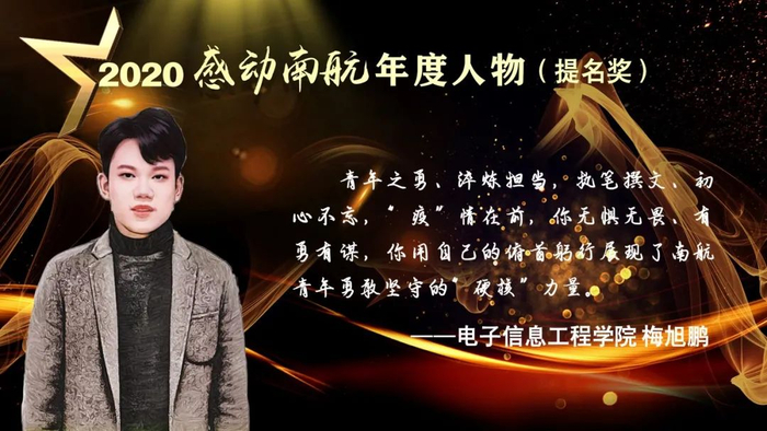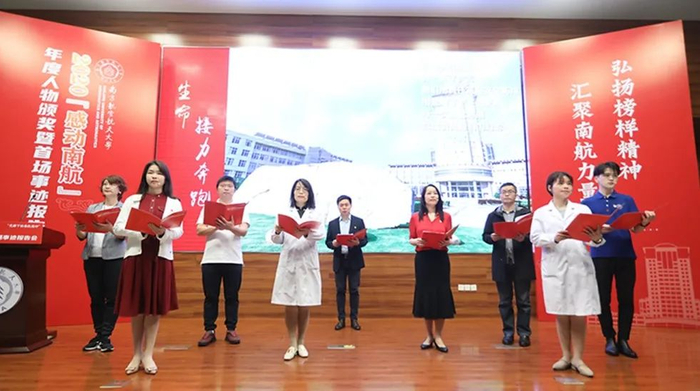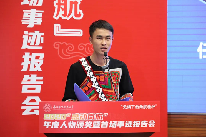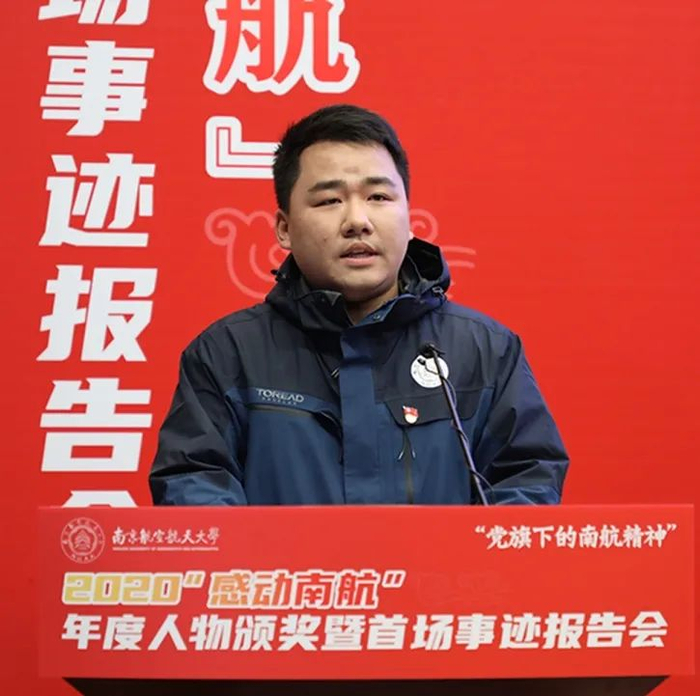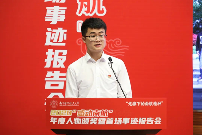 2020“感动南航”年度人物、CK长空靶机供靶团队代表张元杰讲述了团队在戈壁沙漠铸就“国之重器”的故事,理学院团委书记、辅导员欧珊讲述深耕学生工作、精准学风建设的经历,经济与管理学院教授、国际合作处处长张卓讲述了自己十几年如一日陪伴学生点亮创新创业梦想的故事,能源与动力学院车辆智能线控系统“五好”导学团队成员高犇同学讲述了团队在导师赵万忠教授的带领下,不断创新、取得突破的故事,经济与管理学院学生阿恩克其讲述了自己创建支教团队、助力家乡扶贫的故事。