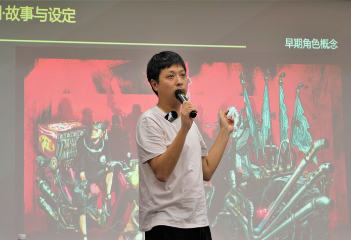 会上,赵霁分享了自己毕业之后的工作经历以及进入动画行业的缘由契机。他以电影《新神榜:哪吒重生》为例,介绍了动画电影从立项构思、制作到后期成片的流程,并向在场同学首次展示了“哪吒重生”的概念短片。