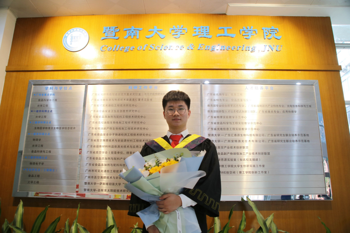 在校期间,他曾获国家奖学金、国家励志奖学金、校一等奖学金、金龙鱼本科科创人才奖学金。入选暨南大学本科优异学生培养计划,获得暨南大学第九届“5A卓越引领计划”学习之星标兵奖荣誉称号等。