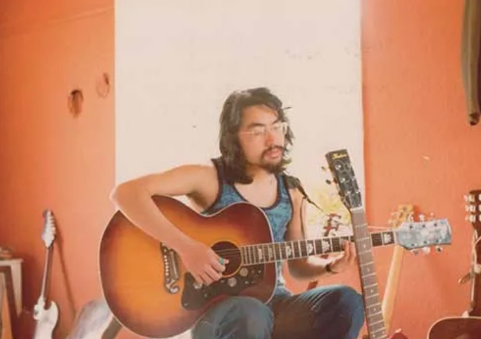 1977年弹吉他的石黑一雄,图片来源:诺奖官网。