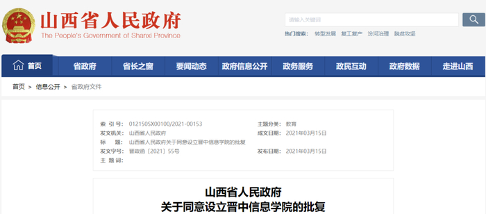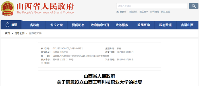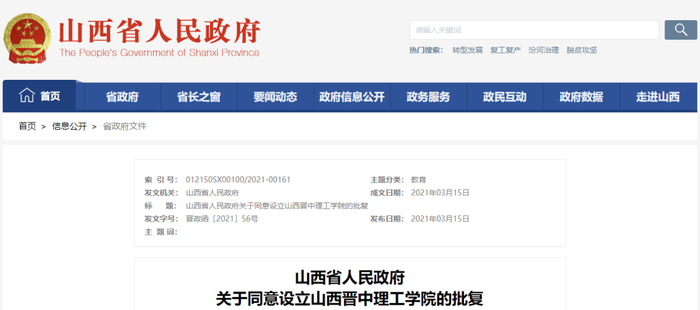3月29日,从山西省政府传来消息,我省同意设立山西晋中理工学院、晋中信息学院、山西工程科技职业大学、山西工学院。其中: