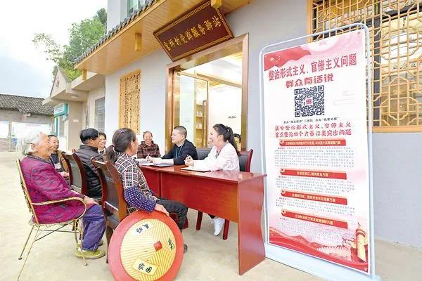 重庆市忠县纪委监委开展“整治形式主义、官僚主义问题,群众有话说”接访活动,深入村组社区、田间地头,了解发生在群众身边的形式主义、官僚主义问题线索。图为该县纪检监察干部在新立镇官坪村向群众了解相关情况。彭俊华 摄