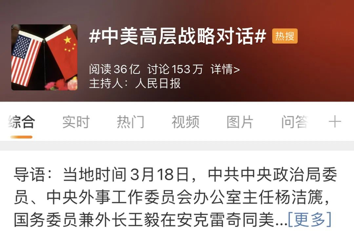 第二轮对谈结束后,王冰汝在场外对王毅部长的简短采访,登上热搜#王毅说会谈气氛谈不上紧张#。