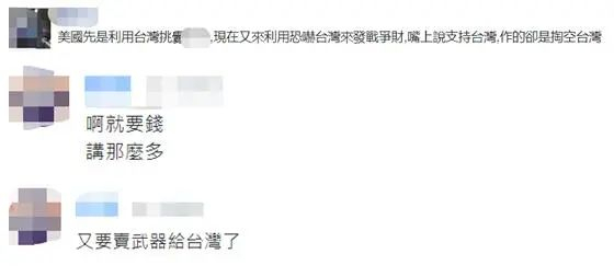 对于奥赫曼内克的相关说法,有岛内网友讽刺,美国先是利用台湾挑衅大陆,现在又来利用恐吓台湾来发战争财,嘴上说支持台湾,做的却是掏空台湾;有网友说,“就要钱,讲那么多”“又要卖武器给台湾了”。↓