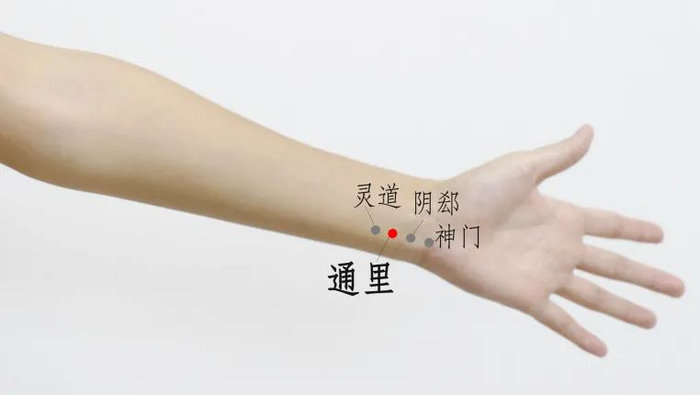 本穴为手少阴之别络,从此别走手太阳小肠经,经气由此通达表里二经,且兼小肠为受盛之官,化物出焉,若井里然,故以为名。会元有云:通里在掌后一寸陷中是穴。