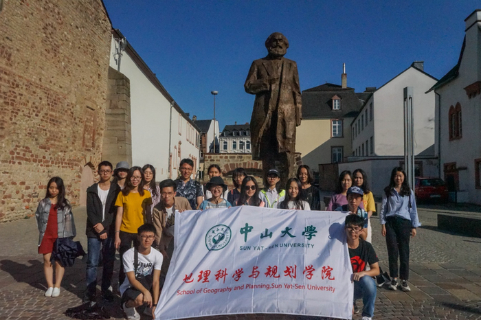 ▲国际实习项目师生在德国特利尔马克思故居前合影