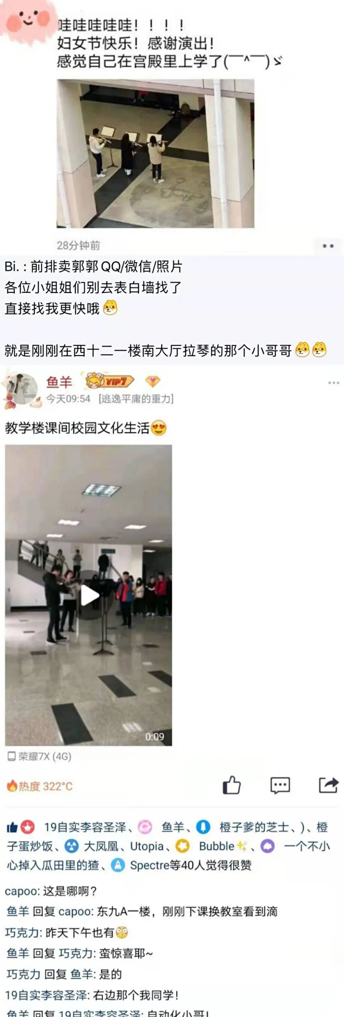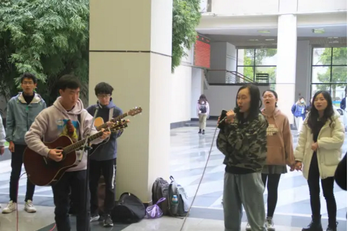 武汉的三月总是阴雨绵绵,在难得的晴天里,和小伙伴们在西十二放声歌唱,这样的经历无论是对紧张的歌手,还是好奇的行人都是一段有趣的经历。音乐的魅力就在于只要一首歌就能开启元气满满的一整天!那么下课了,我们一起去唱歌叭。