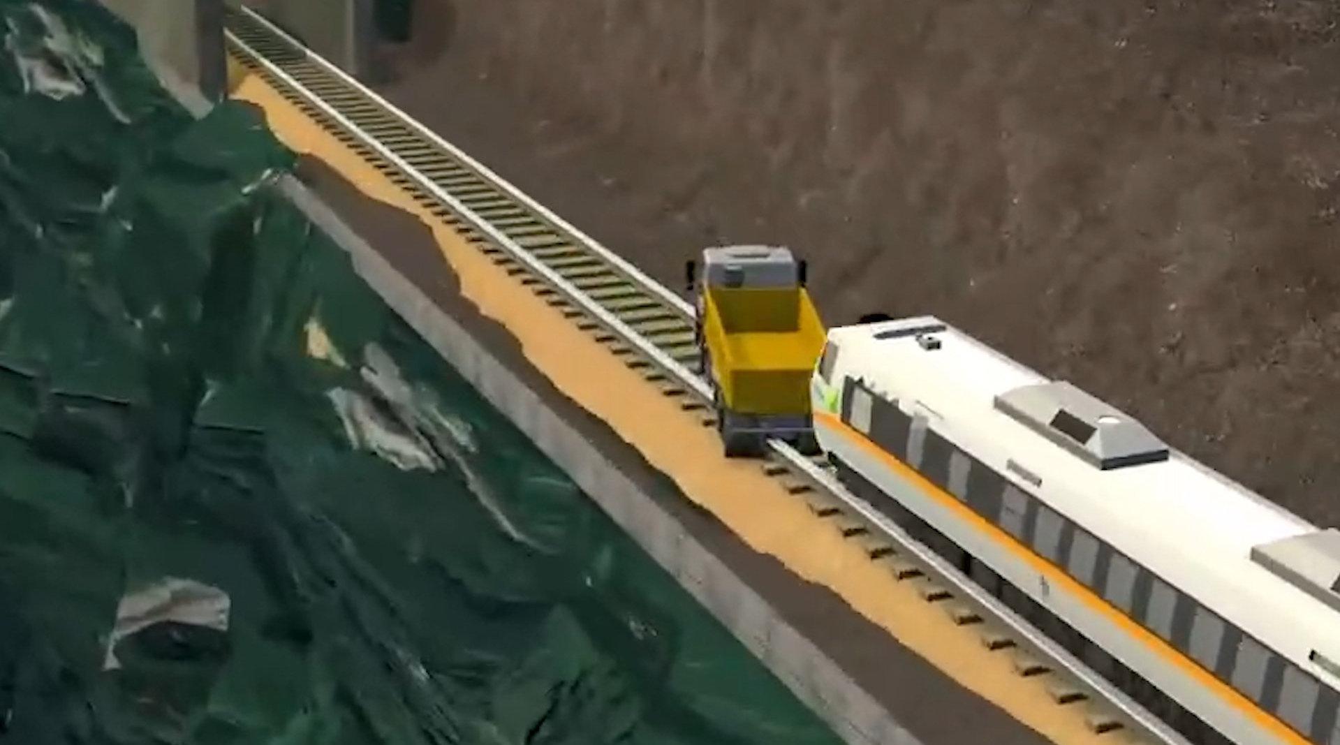 台媒动画还原事发瞬间:工程车滑落轨道 列车径直驶来相撞脱轨