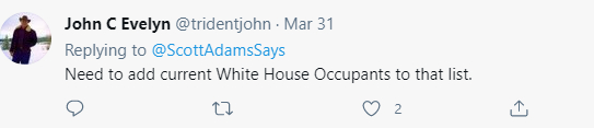 这不,在亚当斯那则贴文下面,有认同他观点的人就表示“应该把现在居住在白宫的那伙人也加入到这个清单中”。