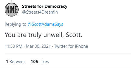 还有美国网民讽刺说,亚当斯这个帖子已经成为了2021年最脑残事件的有力竞争者。