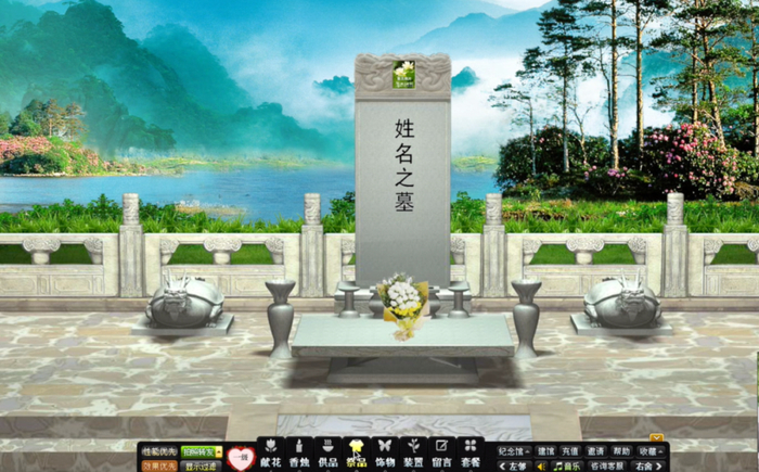 青山环绕、白鹤飞翔的画面配以悠远的背景音乐,墓碑、蜡烛、鲜花、焚香等一应俱全。近年来,网络祭祀活动兴起,成为清明节新气象。