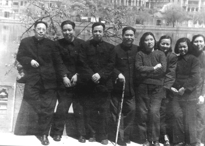 ▲ 1953 年老战友合影。左起 :张纪元、方行、万景光、刘晓、张毅、王辛南、沈舜琴、冯志琼