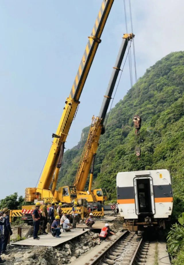 台湾联合新闻网最新消息称,这班列车共有8节车厢,第1、2节车厢遭滑落的工程车撞击出轨,死伤较轻,最严重的是卡在隧道内的第6、7、8节车厢,因在隧道内来回撞击变形,让死者遗体分离破碎,台铁今(3日)早已将首节车厢拉出,目前正在吊挂第2节。