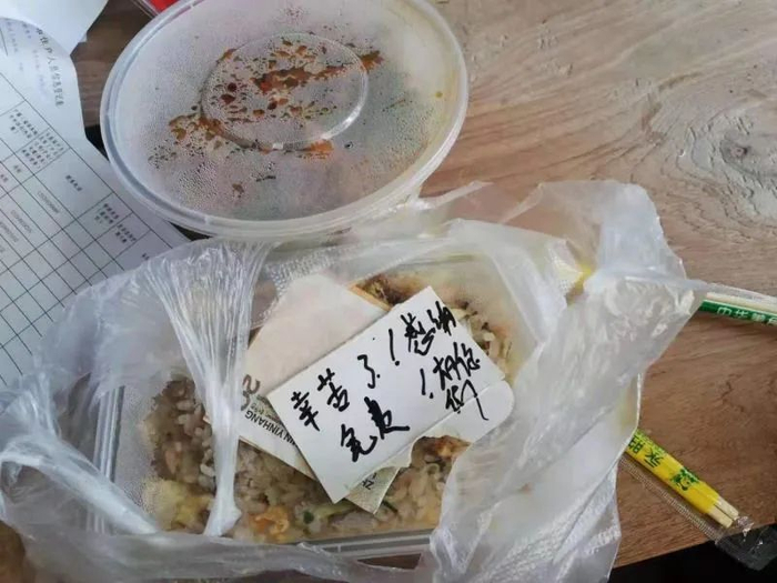满应告诉记者,从去年开始,她们就不定时地组织送餐了。制作餐食的钱款由村民自愿筹集,当天带了200份西米露,200份凉米线,送到多个临近的防控点,送完餐大约需要2-3个小时。“他们这一年多来真的太辛苦了,我们妇女同胞也做不了什么,送点吃的来希望可以缓解他们的疲劳。”