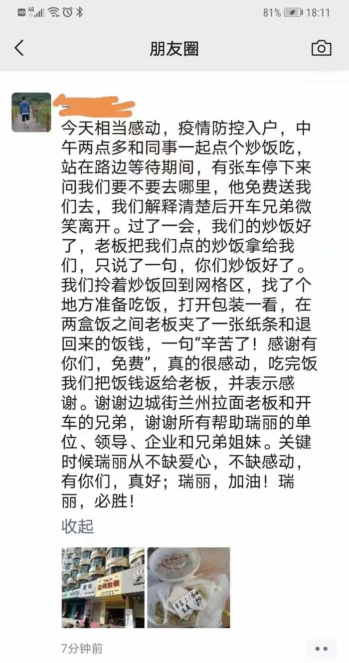 对于一家小店来说,每天像这样提供免费的饮用水也是一笔不小的开支,问她为什么要这样做,姚玉莲说:“我们就在医院旁边,看着医生们非常辛苦。我们就是为瑞丽做点小事,希望这也能变成战胜疫情的力量和信心。”