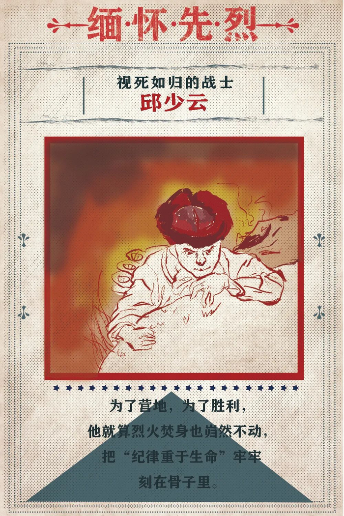 作为英雄的传人,邱少云生前所在连队从邱少云壮烈牺牲的那一刻起,就把“纪律重于生命”的精神注入一茬茬官兵血脉,成为永远不灭的连魂。正是对党的追随、对共产主义的信仰、对祖国和人民的热爱,筑就了邱少云英勇战斗、不怕牺牲的思想高地,奏响了“烈火中永生”的时代强音。