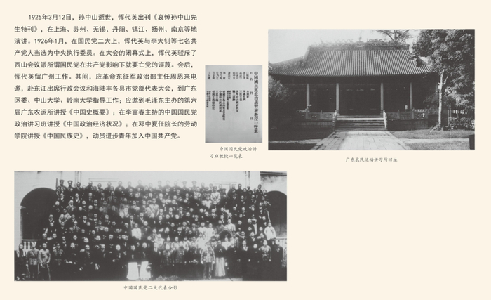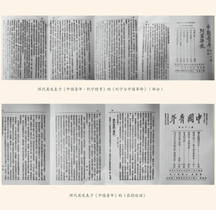 恽代英创办并主编《中国青年》,启发和引导青年走上革命道路,是青年的良师益友。他参与领导五卅运动,四处奔走传播真理,激流勇进。在上海大学任教,富有哲理的讲课吸引无数听众。在黄埔军校、武汉军校任政治主任教官、中共党团书记,为培养革命人才呕心沥血。他参加中共五大,当选为中共中央委员。他长于演讲,精于写作,在农民运动、军队建设、利用外资等诸多方面提出许多极富前瞻性的思想论点,为党的革命理论的形成和实践做出了重要贡献。