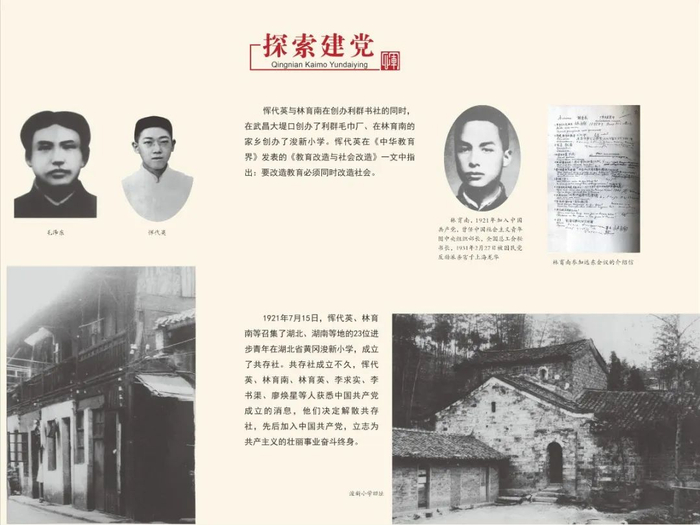 1921年7月15日恽代英、林育南等召集了湖北、湖南等地的23位进步青年在湖北省黄冈浚新小学,成立了共存社。共存社成立不久,恽代英、林育南、林育英、李求实、李书渠、廖焕星等人获悉中国共产党成立的消息,他们决定解散共存社,先后加入中国共产党,立志为共产主义的壮丽事业奋斗终身。