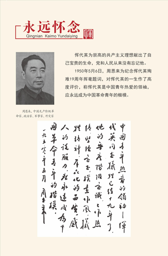 恽代英为了中华民族的独立,为了中国人民的解放,无私无畏地战斗了一生。