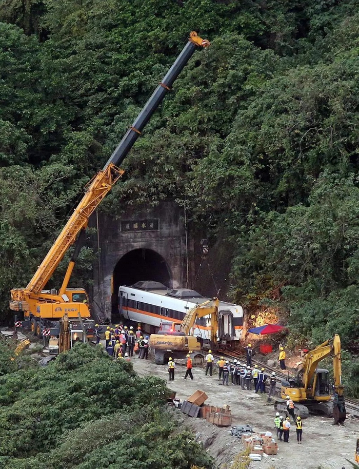 台铁“太鲁阁号”408次列车出轨造成重大伤亡,今天(4日)下午3时花莲地检署最新确认死亡人数为50人,其中48人已确定身份,另有2具遗体无身份姓名,需要家属指认。台铁“太鲁阁号”出轨意外进入第三天,工程、土木专家针对隧道状况进行评估,最后用火车和大型机具将第四节车厢顺利拉出。