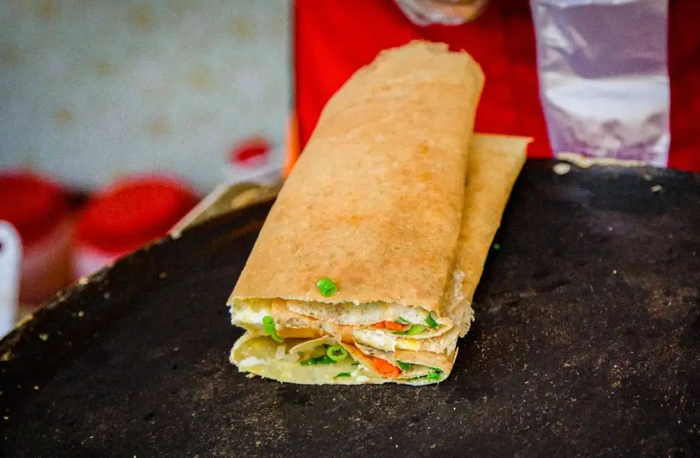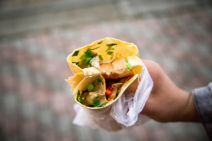 “我是山东人,初来这个学校没有想到能吃上自己家乡的味道,方舟的杂粮煎饼挺不错的,不能吃辣的同学可以让阿姨少放点辣椒~作为一个山东人,我不得不感慨一下小米薄脆真的是杂粮煎饼的灵魂呐!“——航海学院20级学生张潇月