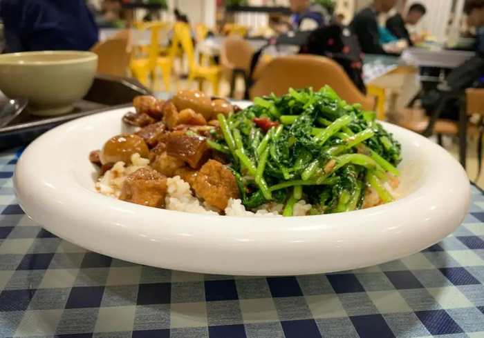 “我做台湾卤肉饭有十来年了,在菜品方面保留了有台湾特色的卤猪肉,也增加了比较多的东北这边的菜提供大家选择。每天都很忙,短暂的休息时间也要监督家里孩子写作业,但是看到同学们喜欢吃卤肉饭真的很高兴!“——东二台湾卤肉饭窗口负责人付阿姨