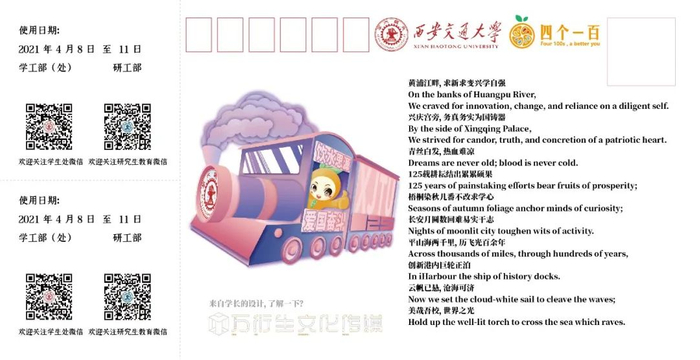西安交大学工部、研工部与党委宣传部新媒体中心一起,送上这份校庆专属加餐券。我们将为50名“幸运儿”送上1张交大125周年校庆专属加餐券。