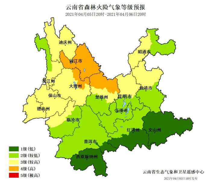 未来24小时,丽江、大理东北部、楚雄北部的森林火险气象等级为4级(等级高),迪庆、怒江南部、大理大部、保山、德宏、临沧西部、楚雄中部、昆明北部、昭通西部、曲靖北部3级(等级较高),其他地区1~2级。请朋友们加强防火意识,严防林火灾害的发生。