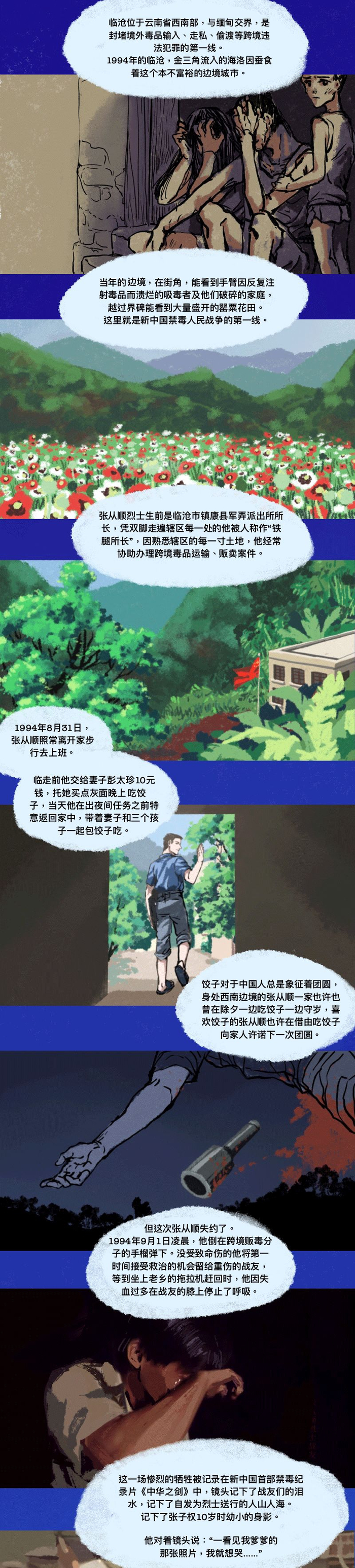 父亲牺牲那年,张子权10岁。长大后,他回到父亲当年用生命守护过的地方,成为一名光荣的禁毒警察。“感觉自己就是要当警察,这份职业相当神圣,一定要做好。”这是张子权生前的坚守和信念。