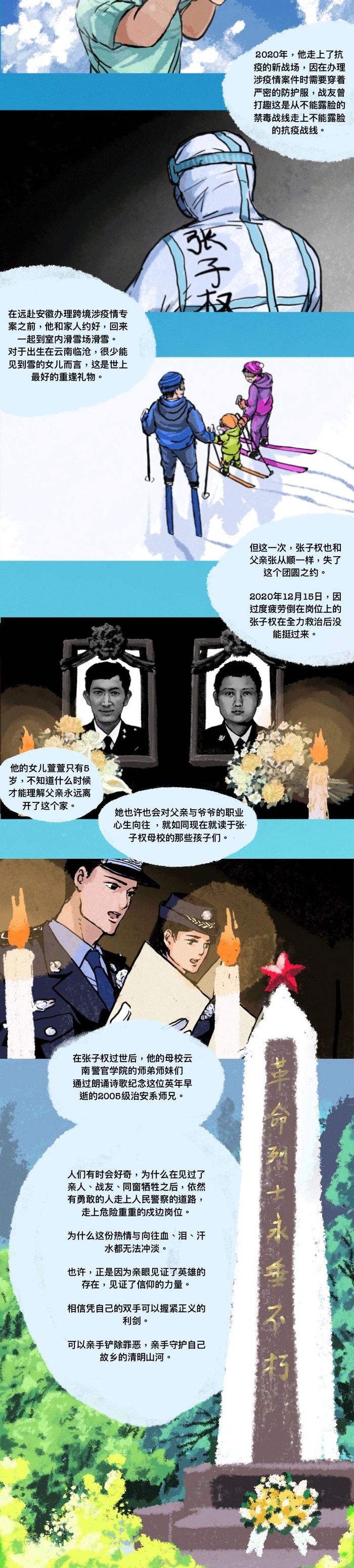 清明节,一组手绘漫画和纪实视频,缅怀英烈父子,致敬全国奋战一线的公安英雄们。