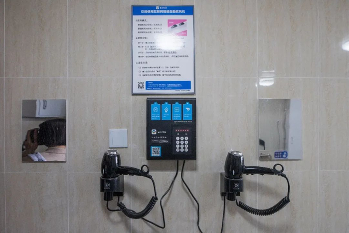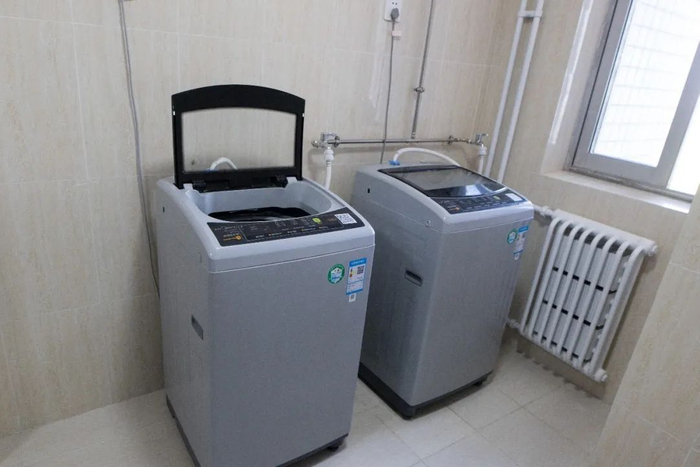 每一层都有安装好的吹风机和洗衣机