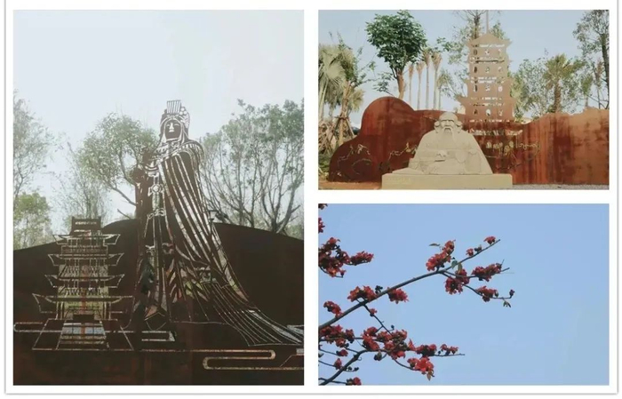 各地的人文历史,在经艺术加工之后,渗透进这花木砖瓦、亭廊流水之间,细细品味,校地情缘亦在其中潜藏。