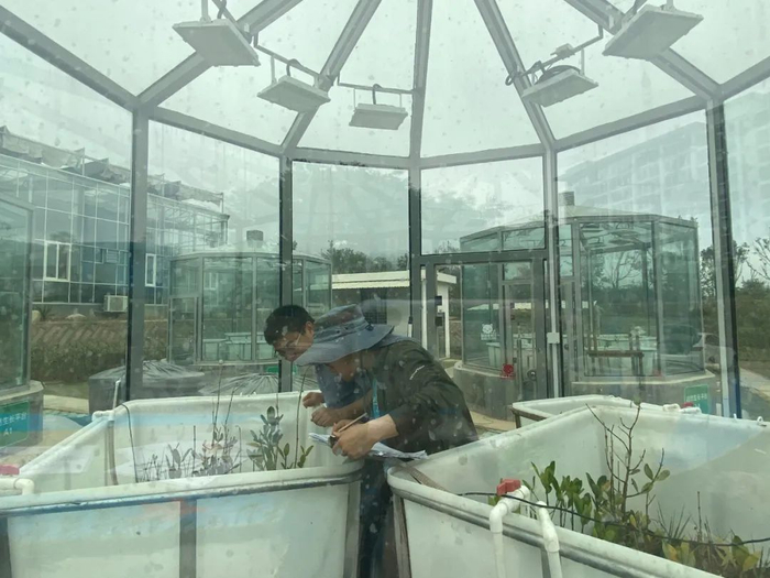 长得像杂草一样的互花米草其实是中国滨海湿地常见入侵物种,在温室中,通过控制温度、光照、水分等条件,模拟其生活环境,以探究防控互花米草入侵的有效方法。