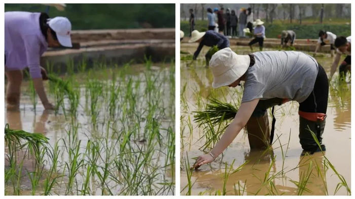 你可以挽起裤脚、下地插秧