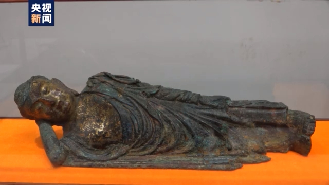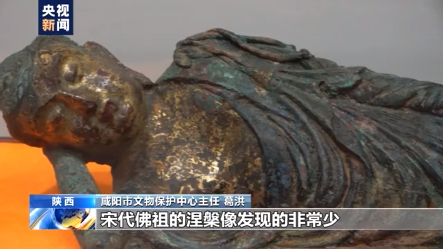 咸阳市文物保护中心主任 葛洪:舍利在阿育王塔里面放着,阿育王塔在这个塔里面放着,就是这样一个整体。文物价值非常高,起码在陕西省境内这是唯一一个发现。宋代佛祖的涅槃像发现的非常少,这个涅盘像也是整个泰塔地宫里面最珍贵的。