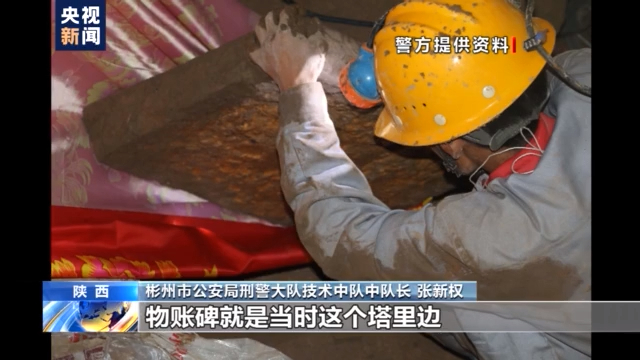 彬州市公安局刑警大队技术中队中队长 张新权:里面基本上没有留下东西,就是坍塌的石条之类的,然后就发现一个物账碑,物账碑就是当时这个塔里边供奉的那些文物记载,上面都有什么东西记得很清楚。