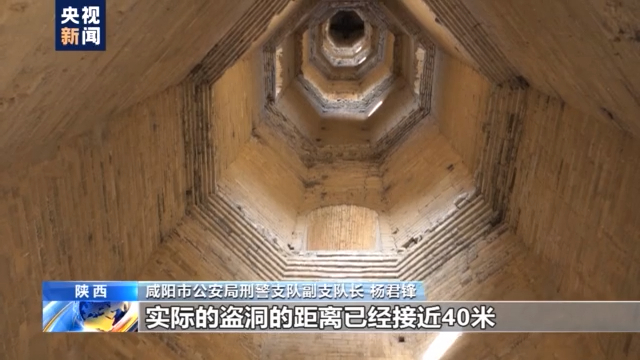 咸阳市公安局刑警支队副支队长 杨君锋:这个直线距离比较近,只是29米,因为他打的是蛇形洞,蛇形洞就来回拐一下,实际的盗洞的距离已经接近40米。打这些盗洞的宽度都是在65到68厘米,高度都是在70厘米。