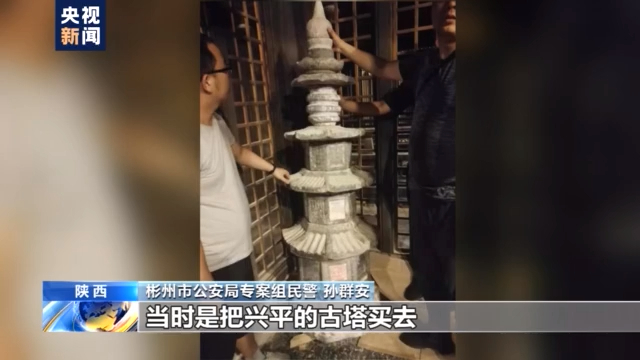 彬州市公安局专案组民警 孙群安:我们找到这个姓刘的时候,发现他建的博物馆特别宏伟,他在这个博物馆的第一层重要的位置,打了一个底座,当时是把兴平的古塔买去,就作为他的镇馆之宝。