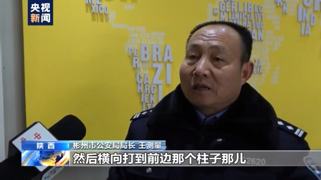 彬州市公安局局长 王测量:这是原始现场。直着打下去,大概7米多,然后横向打到前边那个柱子那儿,然后用分线仪测,然后到塔那儿直接过去。