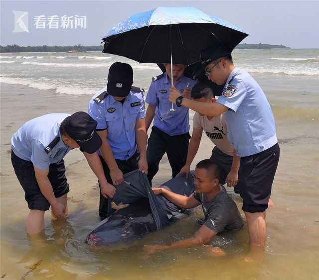 原标题:视频|倭抹香鲸搁浅后,琼海海岸警察做了什么?