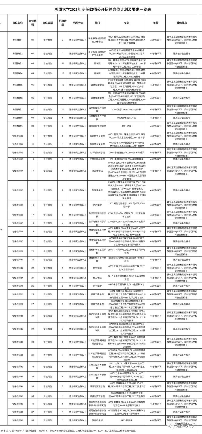 原标题:湘潭大学2021年专任教师公开招聘公告