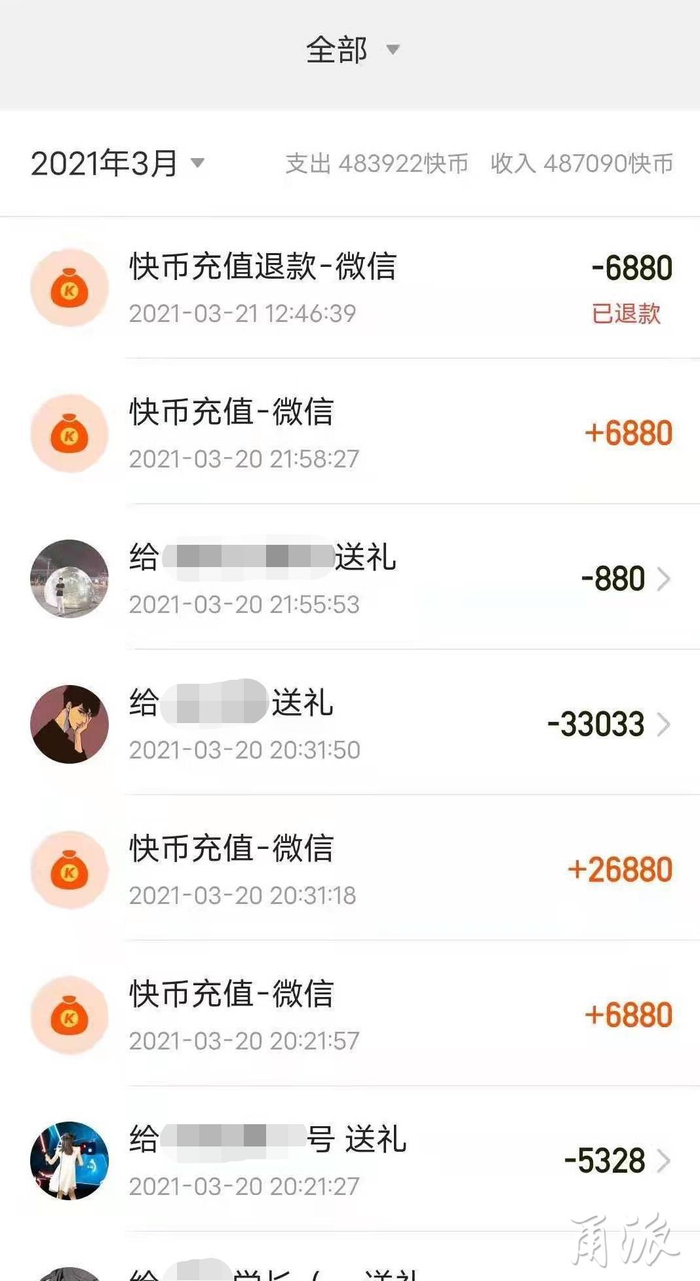 张先生随后联系两个直播平台的客服,某音平台当天就退回所有的3万多元打赏,但某手平台却多次驳回了张先生的退款申请。