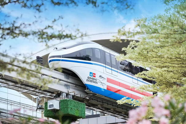 全球首辆跨海云轨列车下线 巴西巴伊亚州长盛赞